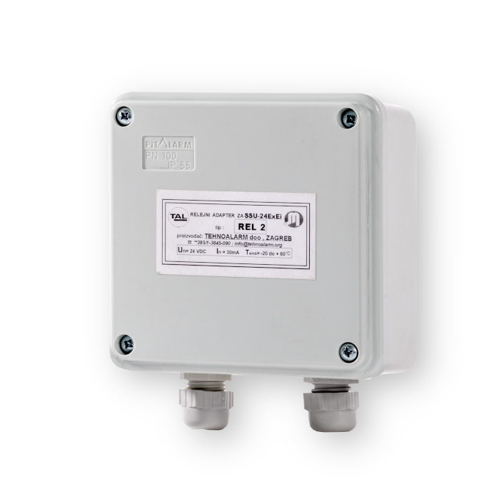 The relay adapter is used as an interface between the SSU (or similar) galvanic power supply unit and the fire control panel (VDC) or zone addressable fire alarm module connected via loop to the VDC.